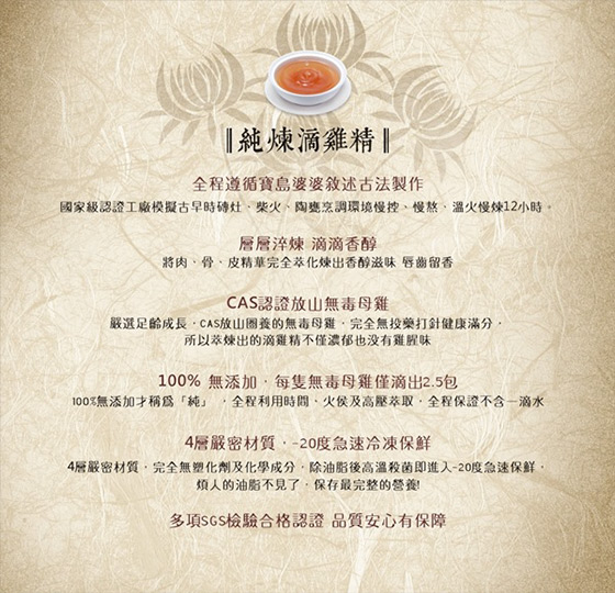 純煉滴雞精依照寶島婆婆愛護子女的心,古法煉製,全程不加一滴水,層層淬煉滴滴菁純,嚴選熟齡成長CAS認證放山老母雞,原汁原味,滴滴精華,享受濃、醇、香!.jpg&ver=20250714)